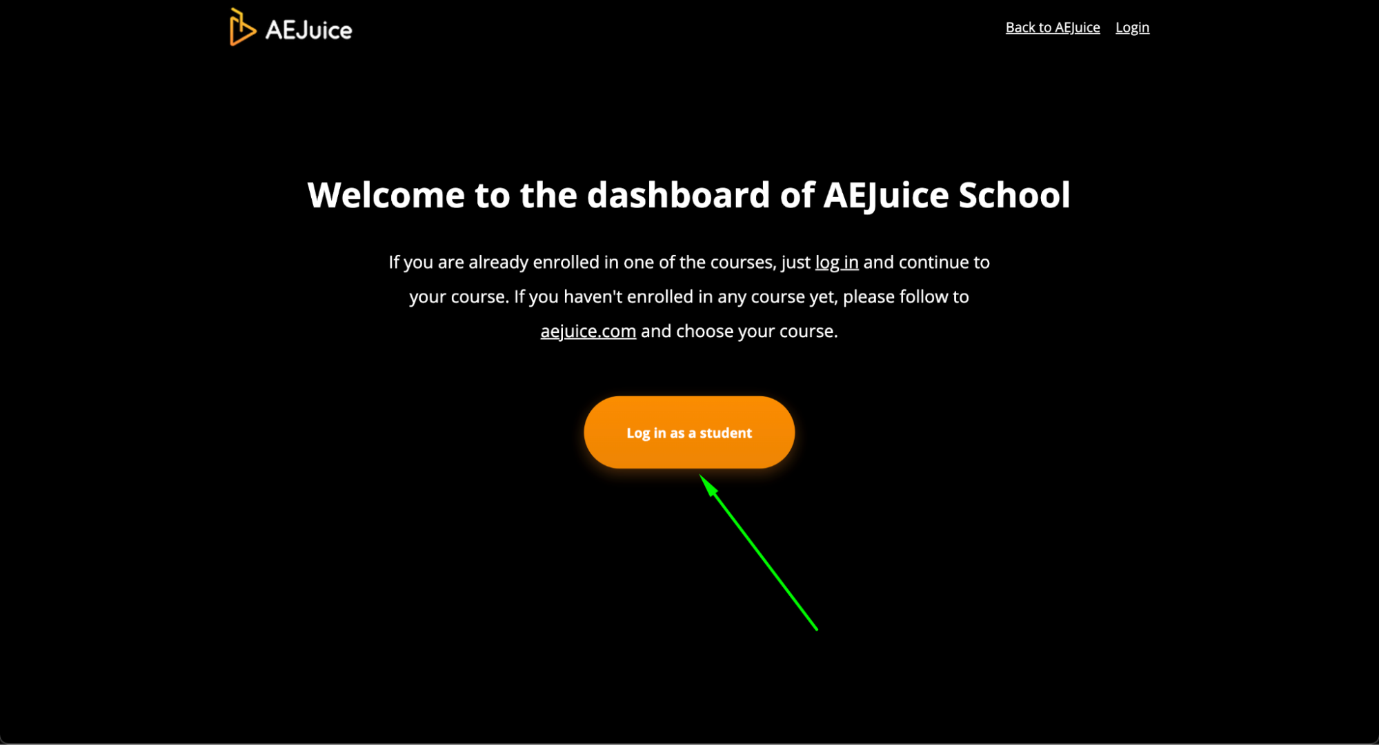 Open your browser and go to aejuice.teachable.com. Once there, click “Login as a student” to start the login process.Step 2: Enter Your Email