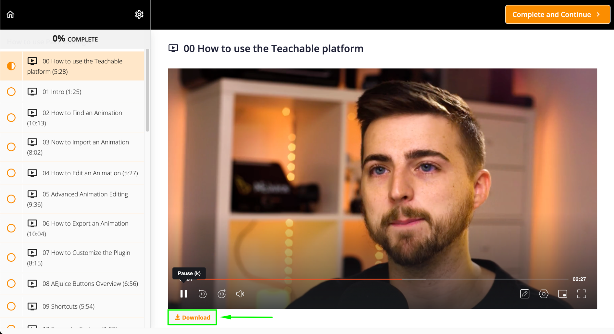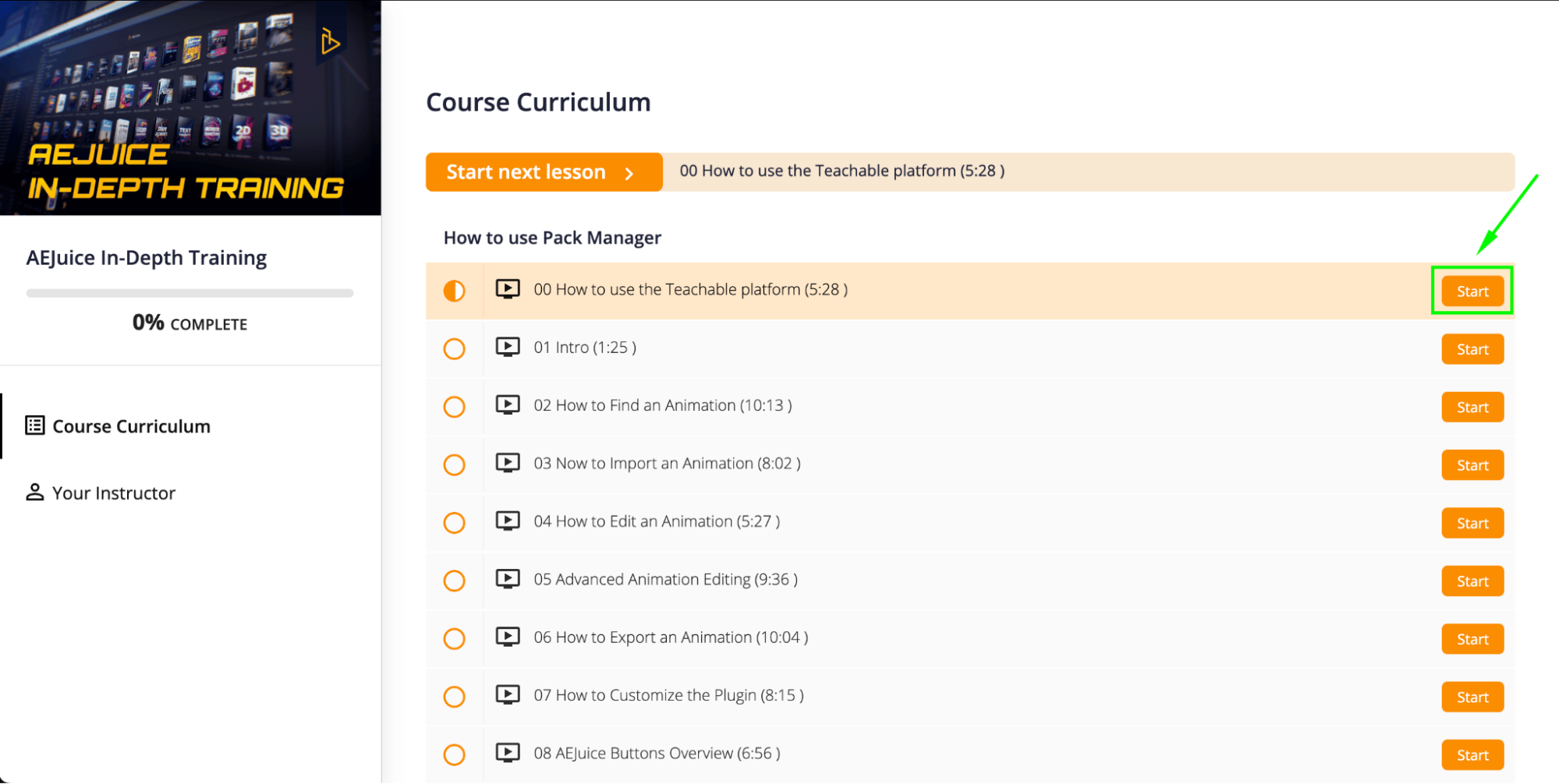 Inside the course, you’ll find a structured list of video lessons. Click the first video marked Start to begin watching. You can go through the lessons at your own pace. Step 6: Watch, Rewind, and Download