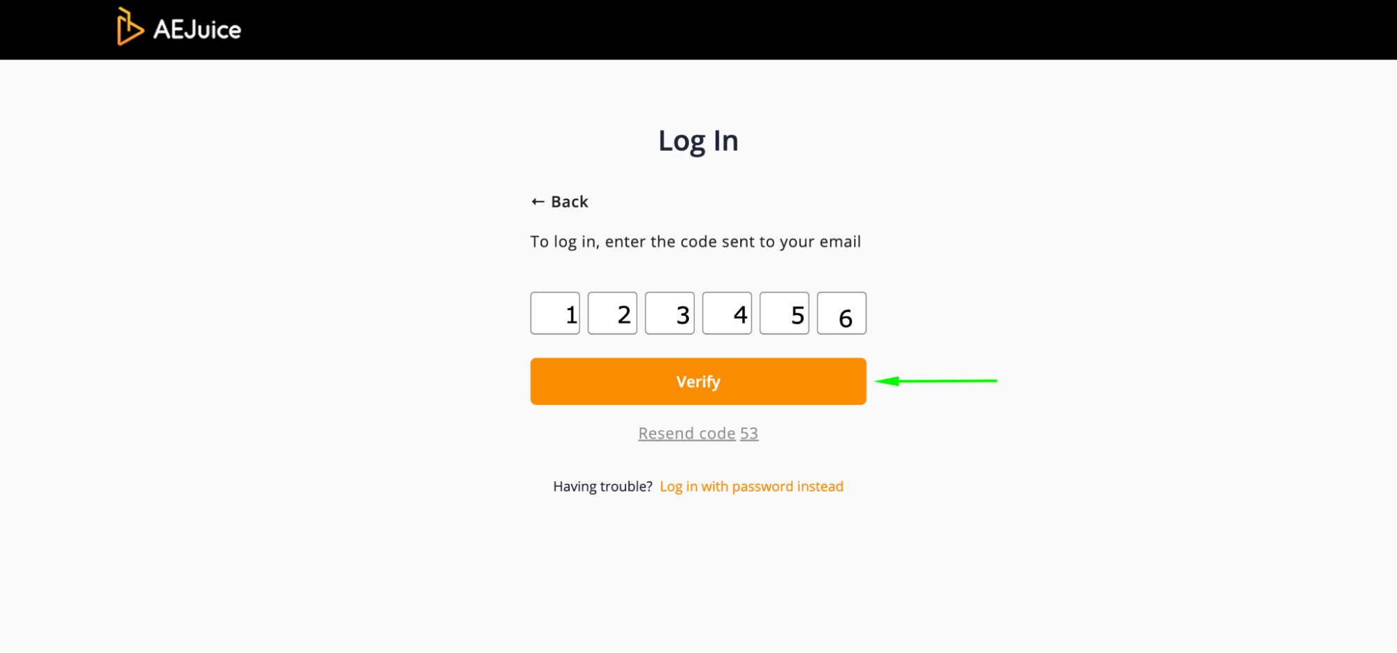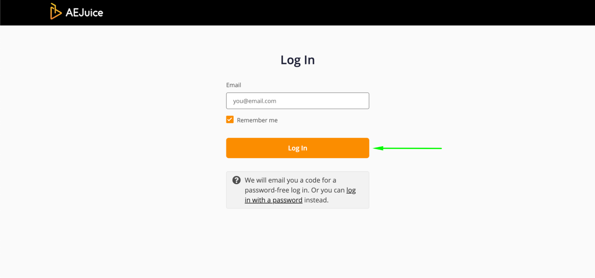 On the login page, type in the email address you used for your AEJuice account and press Log in.