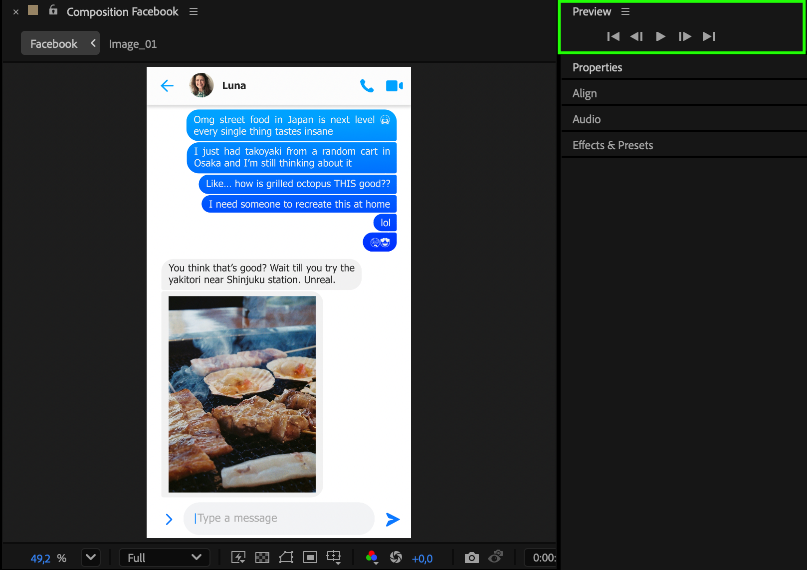 Press the spacebar to preview the chat animation. Make any final adjustments if needed. When you’re happy with the result, export the project using Composition > Add to Render Queue or Adobe Media Encoder.Conclusion