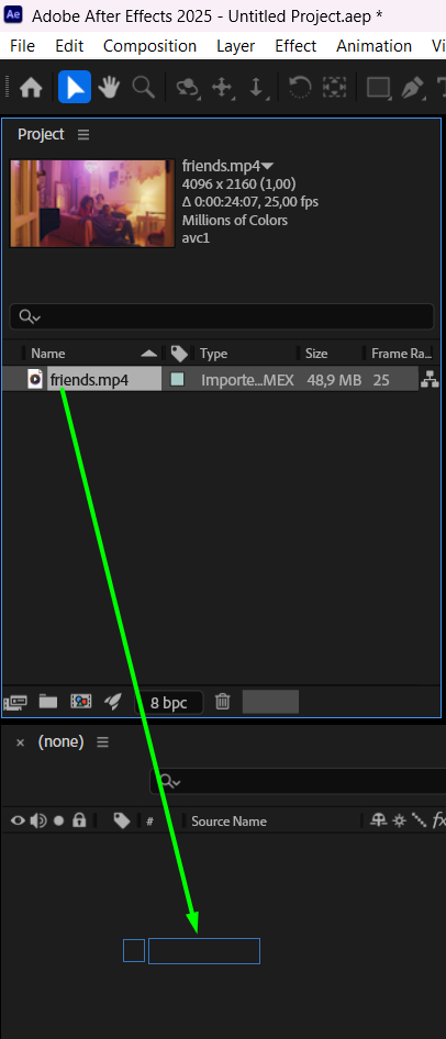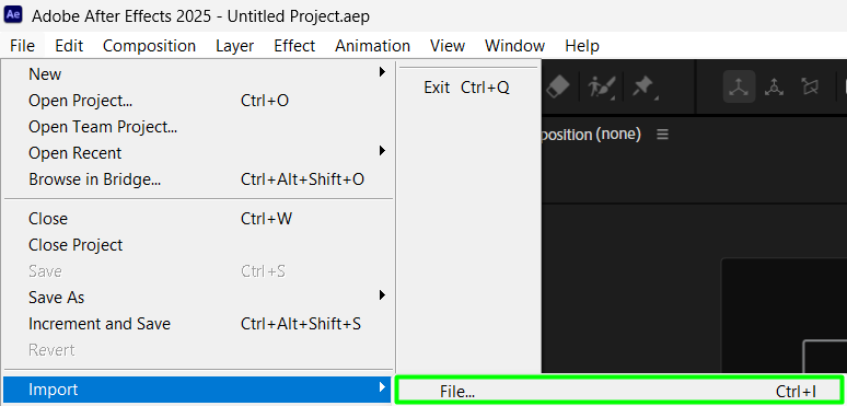 Go to File > Import > File and select the video clip you want to enhance. Drag it into the timeline to create a new composition. This footage will serve as the base for your glitch effects. Step 2: Open AEJuice Pack Manager