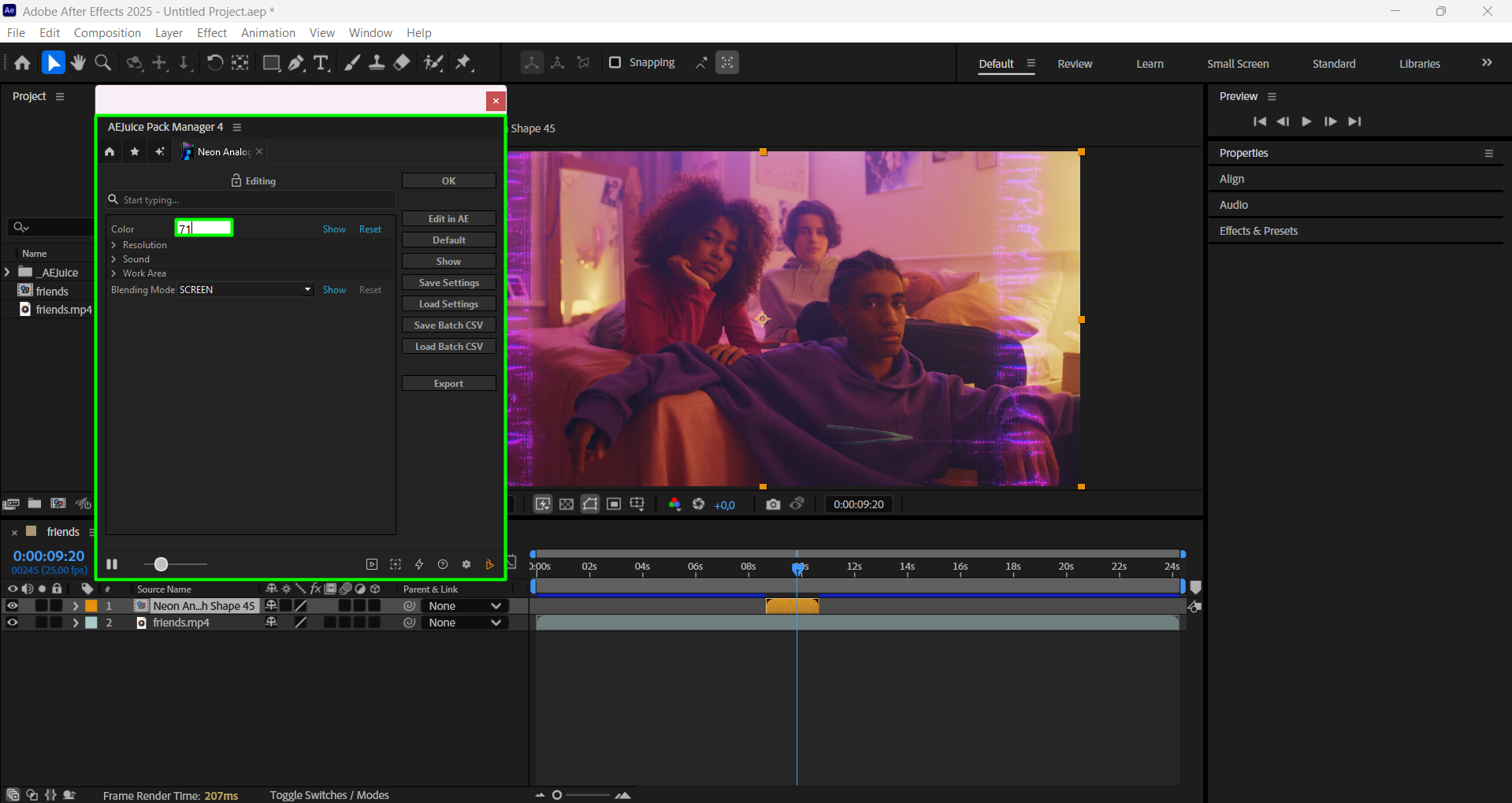 Neon Analog Glitch Shapes bring a dynamic, retro-futuristic vibe to your edits. These effects are perfect for music videos, stylized content, reels, or retro montages. Whether you’re creating a vaporwave-inspired project or want to add distorted shapes for stylistic flair, these glowing glitch elements can enhance your visuals in seconds. In this tutorial, we’ll show you how to apply and customize them using AEJuice.