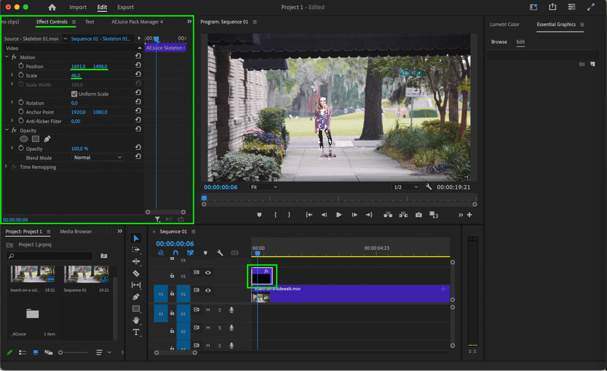 Select the imported effect layer in your timeline. Open the Effect Controls panel to adjust scale, position, or blending settings. This helps you better integrate the effect with your footage and achieve a polished, pixel-perfect look.