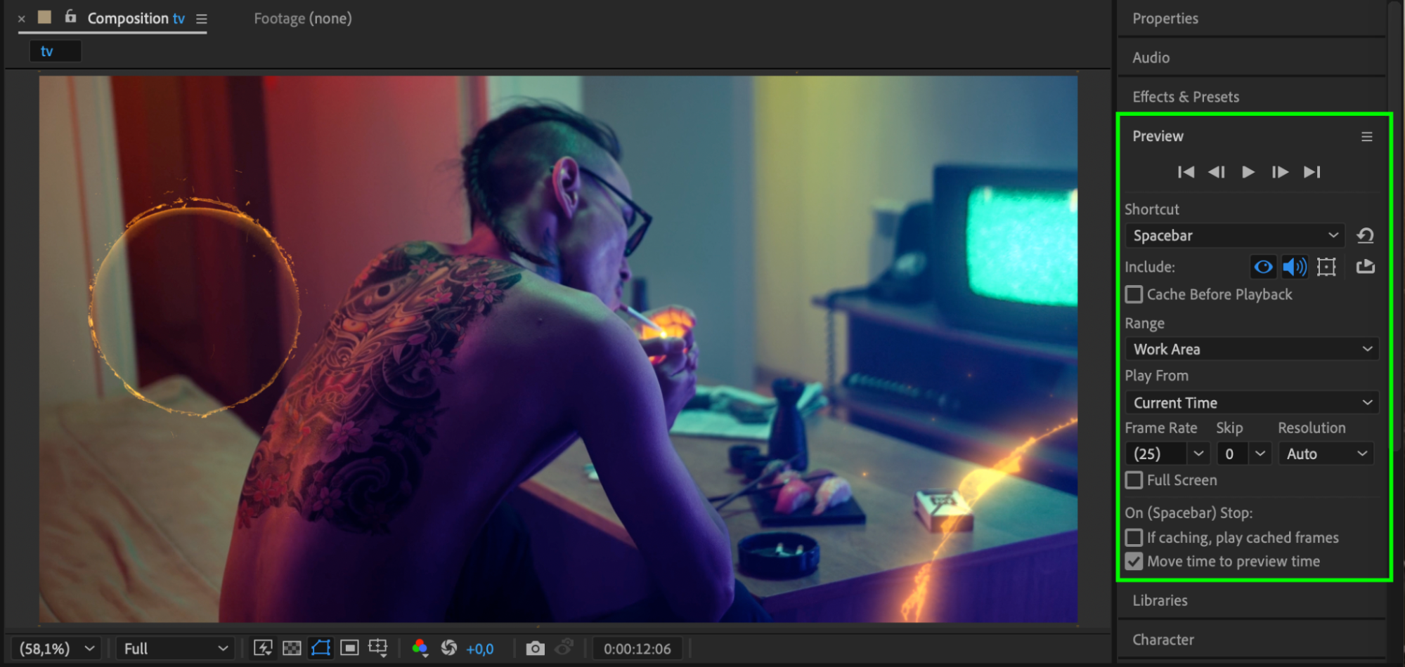 Press Spacebar to preview the effect in real time. Make any final adjustments to timing or opacity. Once you’re satisfied with the look, go to Composition > Add to Render Queue to export your vintage-styled video with the punch hole or cigarette burn effect included.