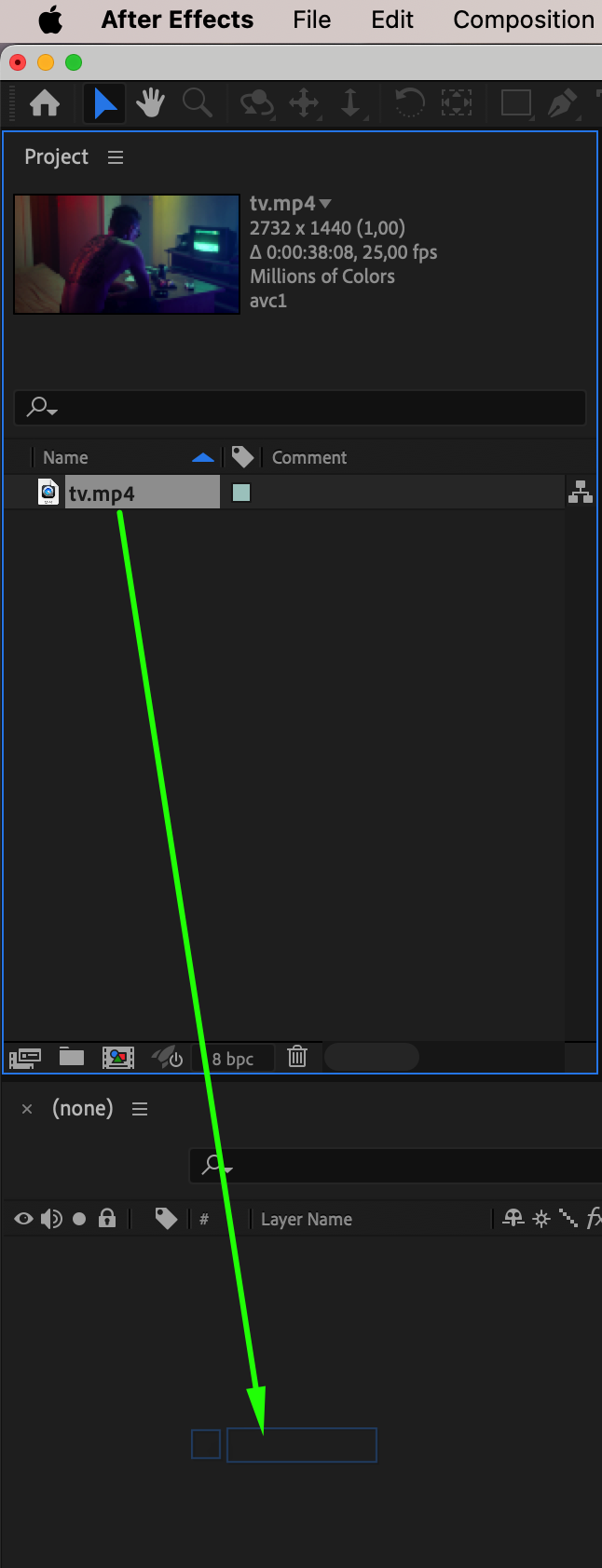Start by opening After Effects and importing your footage. Go to File > Import > File, then select your video clip. Drag the imported footage onto the timeline to automatically create a new composition. This composition will act as your main edit where you’ll apply the vintage effects.
