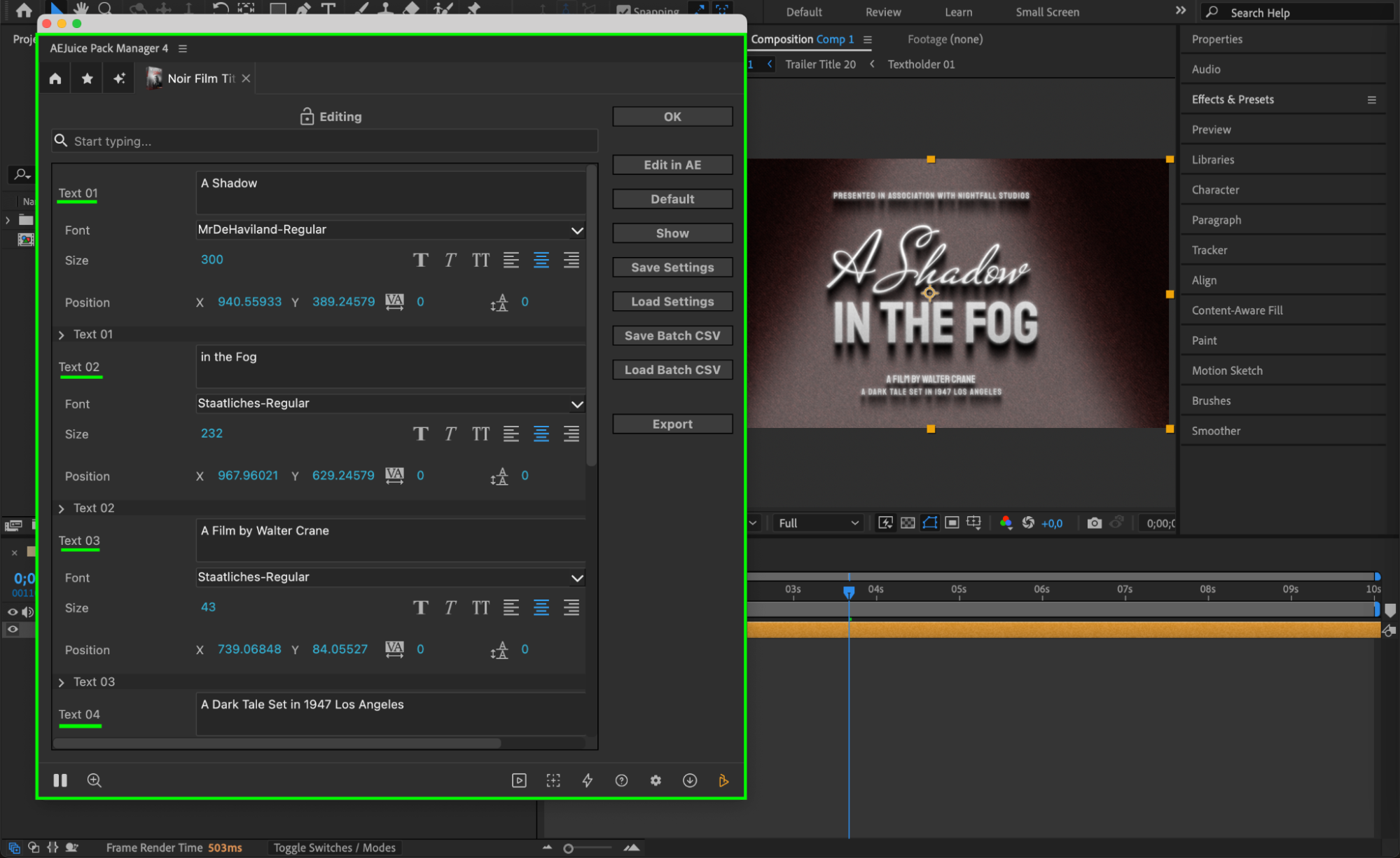 Create Classic Noir Titles in After Effects Using AEJuice Templates
