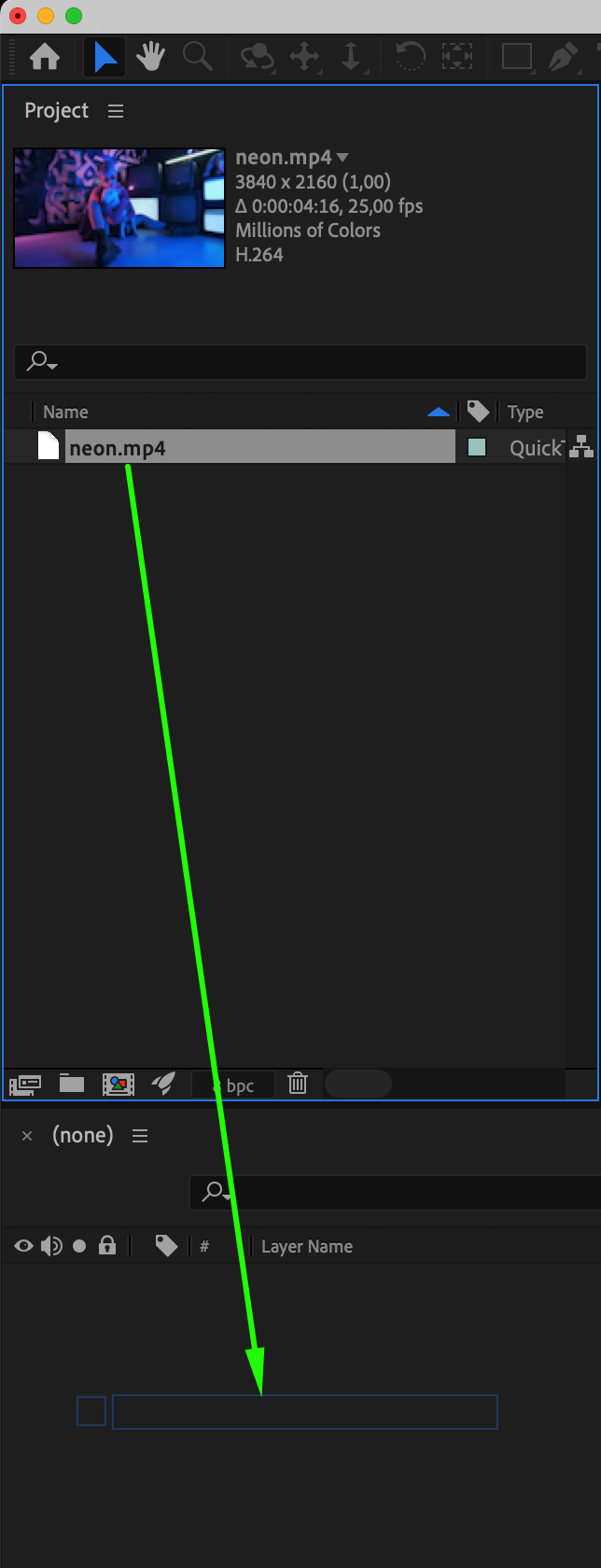 Go to File > Import > File, select your video, and drag it into the timeline. This creates a new composition with your footage as the base layer. This is where you will apply the glitch effect.