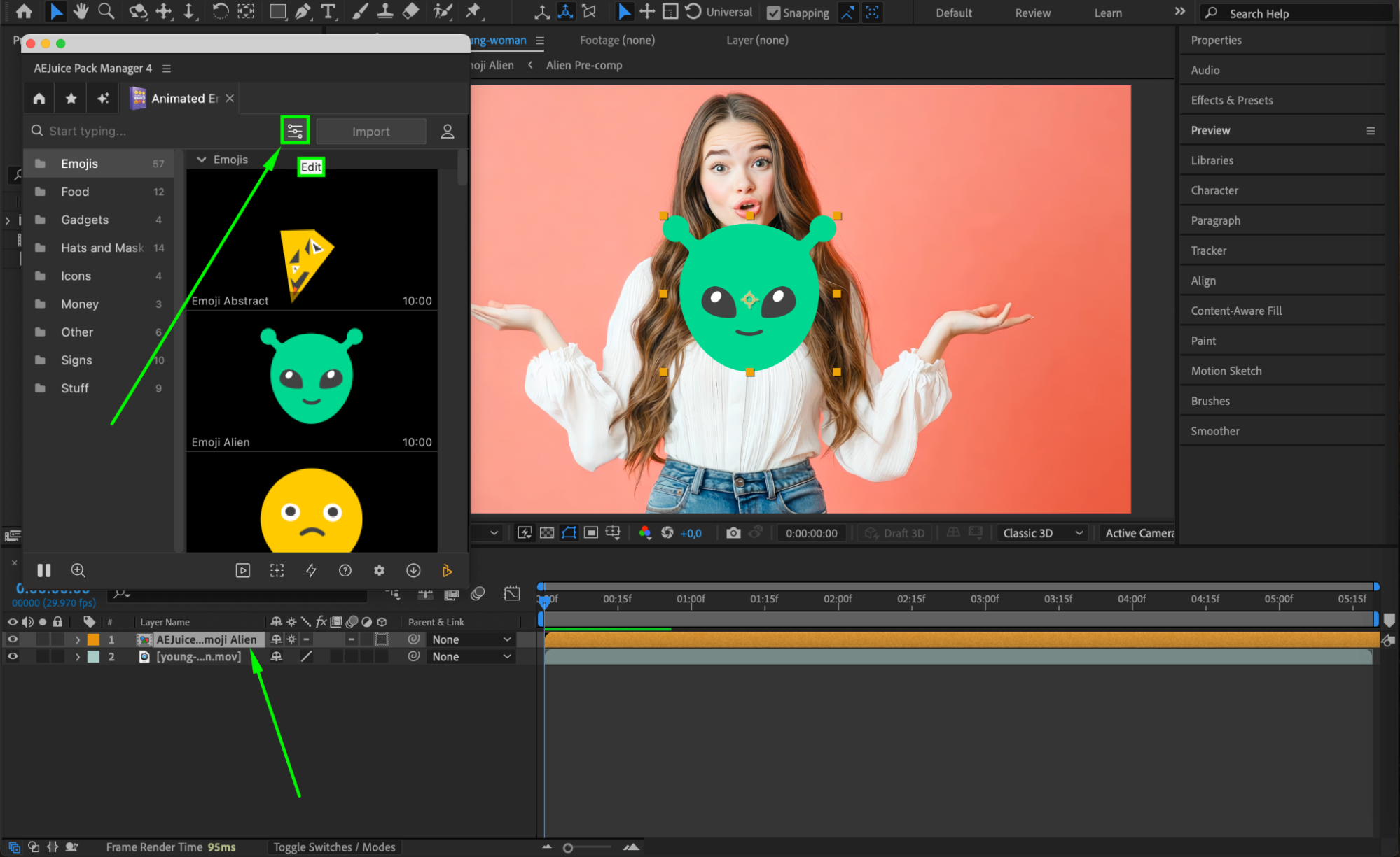 Learn how to add and customize animated emoji overlays in After Effects using the AEJuice Animated Emoji Pack.