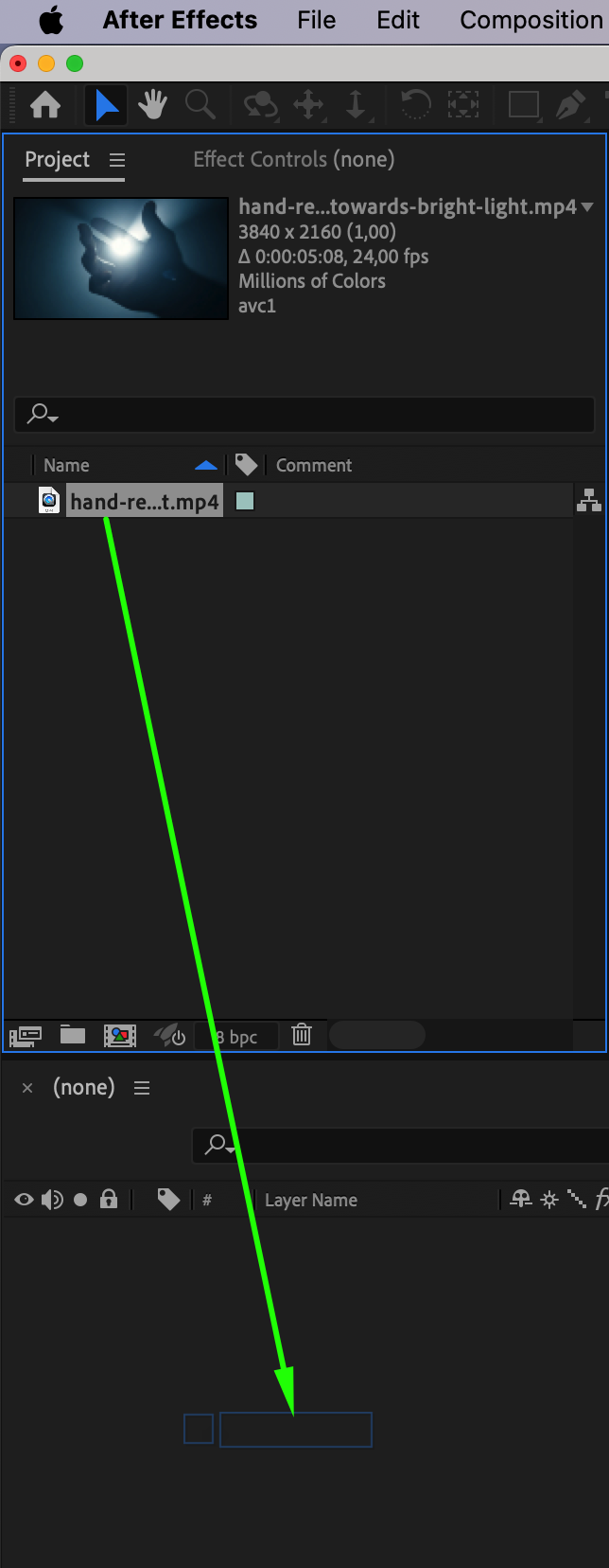 Start by importing your main video file. Go to File > Import > File, select your footage, and drag it into the timeline. This layer will serve as the base for the glitch texture overlay. Step 2: Open AEJuice Pack Manager