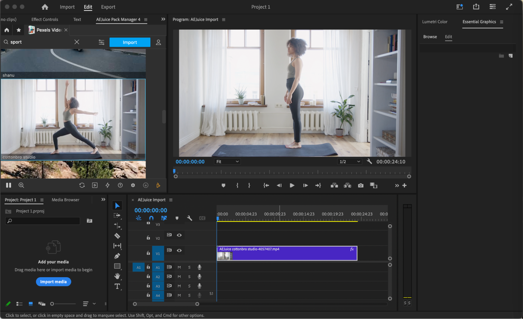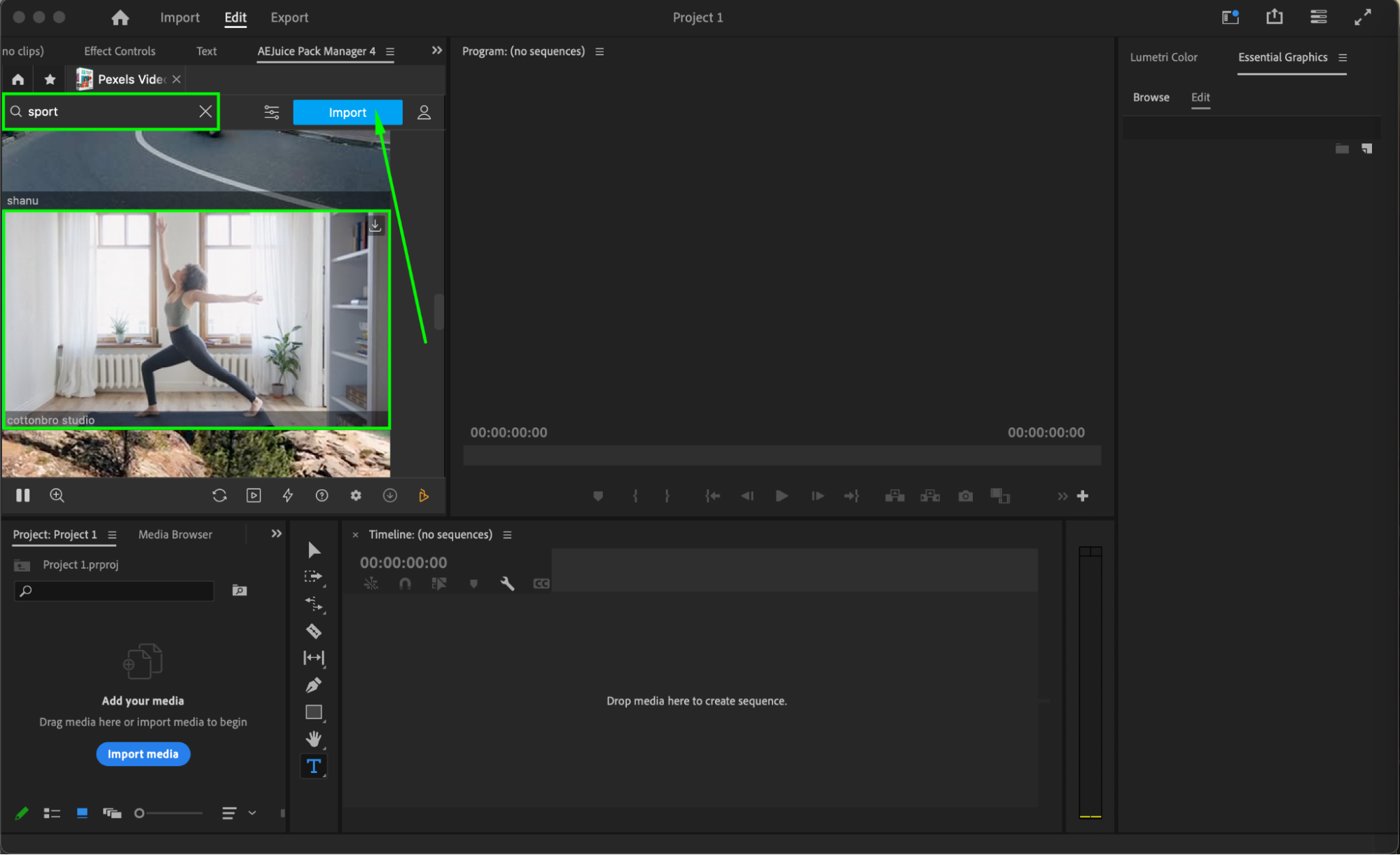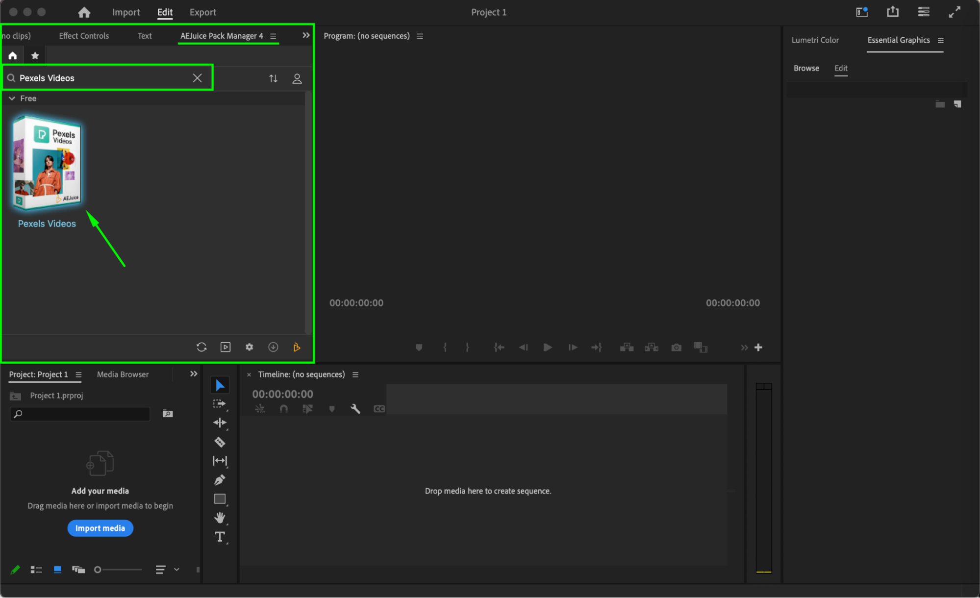 Using Pexels videos in Premiere Pro is a fast and free way to enrich your content with professional-quality footage. Thanks to AEJuice Pack Manager, you can streamline your workflow and access thousands of assets without leaving your editing timeline