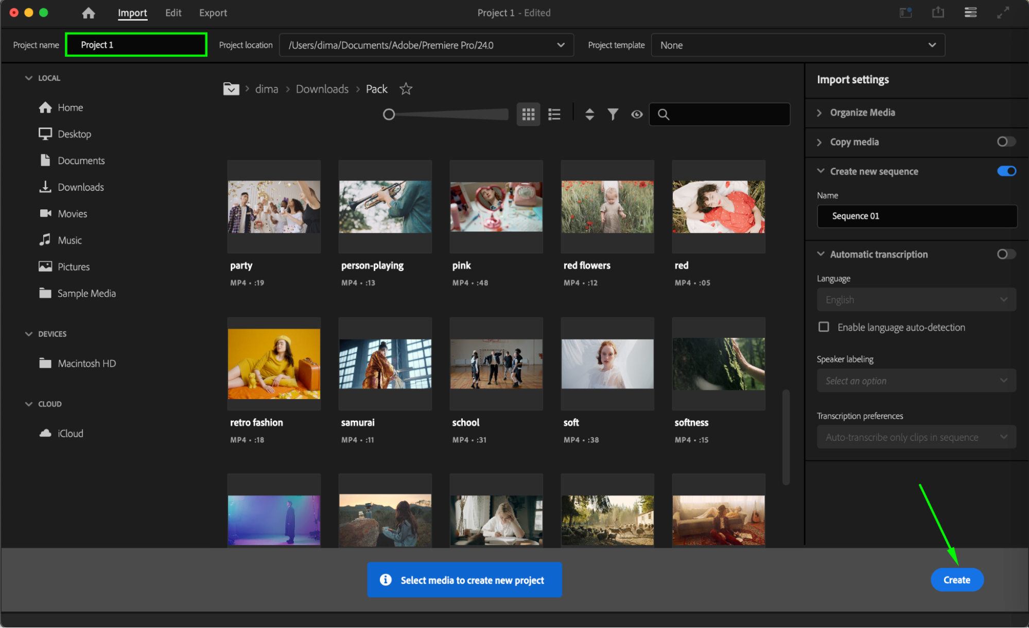 Open Premiere Pro. In the import window, give your project a name in the Project Name field and click Create to begin editing.Step 2: Open AEJuice Pack Manager 4